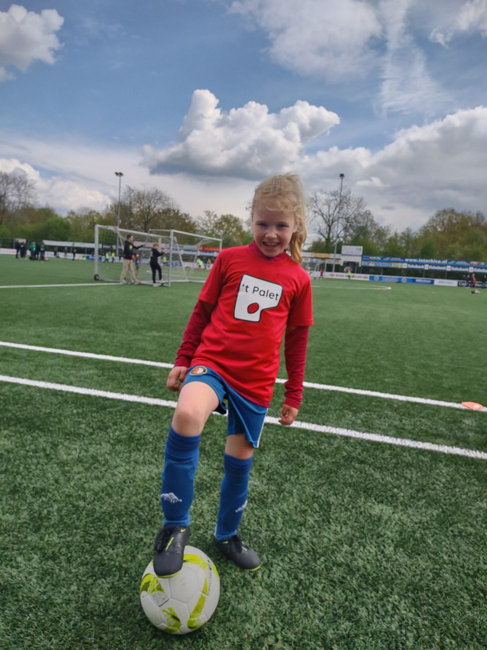 Jessie Bos (’t Palet, groep 3b) is een echt talent; ze heeft namelijk al 6 doelpunten gescoord, dus wie weet hoeveel er nog volgen. Vorig jaar heeft Jessie ook meegedaan. Ze vindt het niet leuk als de tegenpartij scoort, maar dat hoort erbij. Ze vindt het vooral ook heel gezellig met haar team en de coach.
